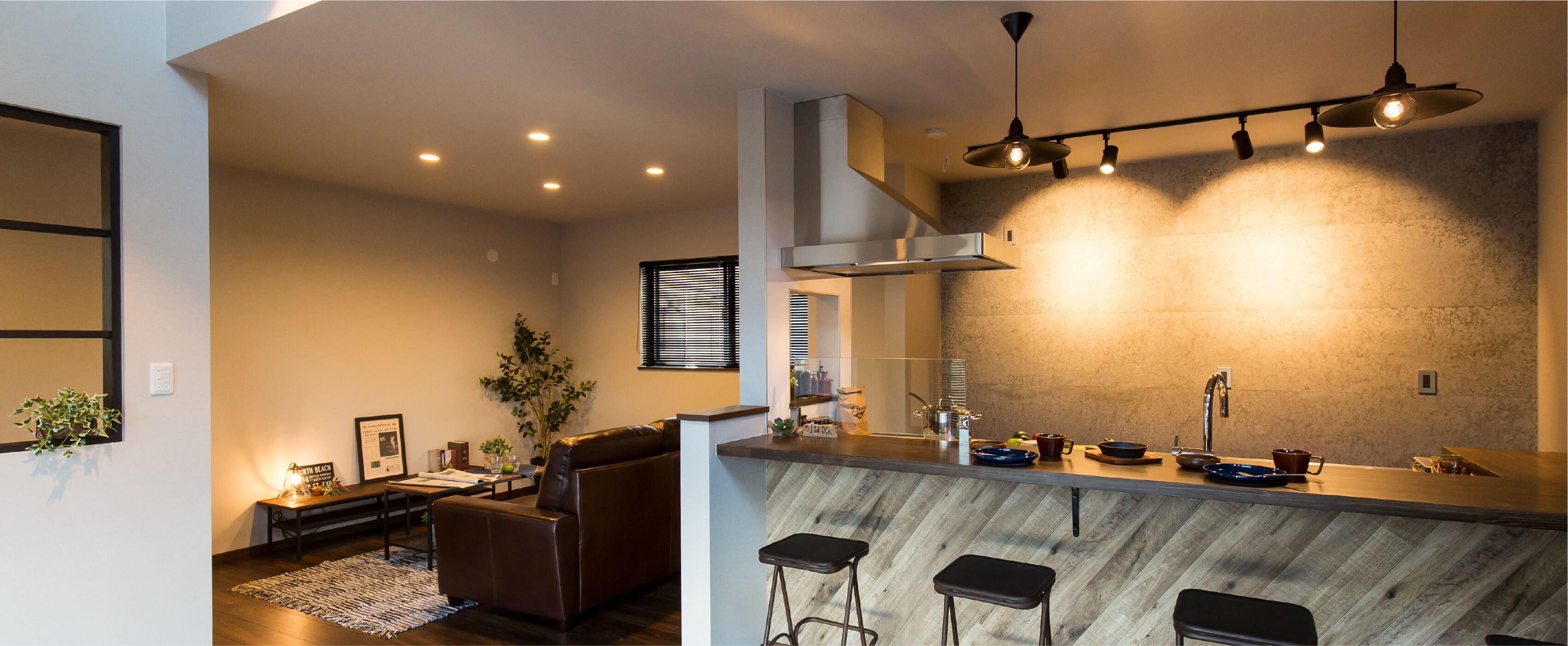 屋根はスタイリッシュなガルバリウム鋼板、外壁は耐久性に優れた窯業系サイディングを採用。さらに高断熱サッシで快適な室内環境を実現。無骨なデザイン性と機能性を兼ね備えた、頼れる住まいです。