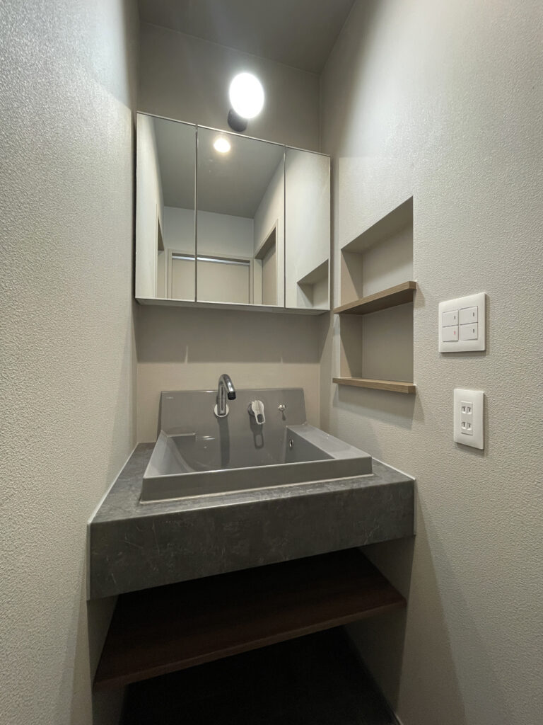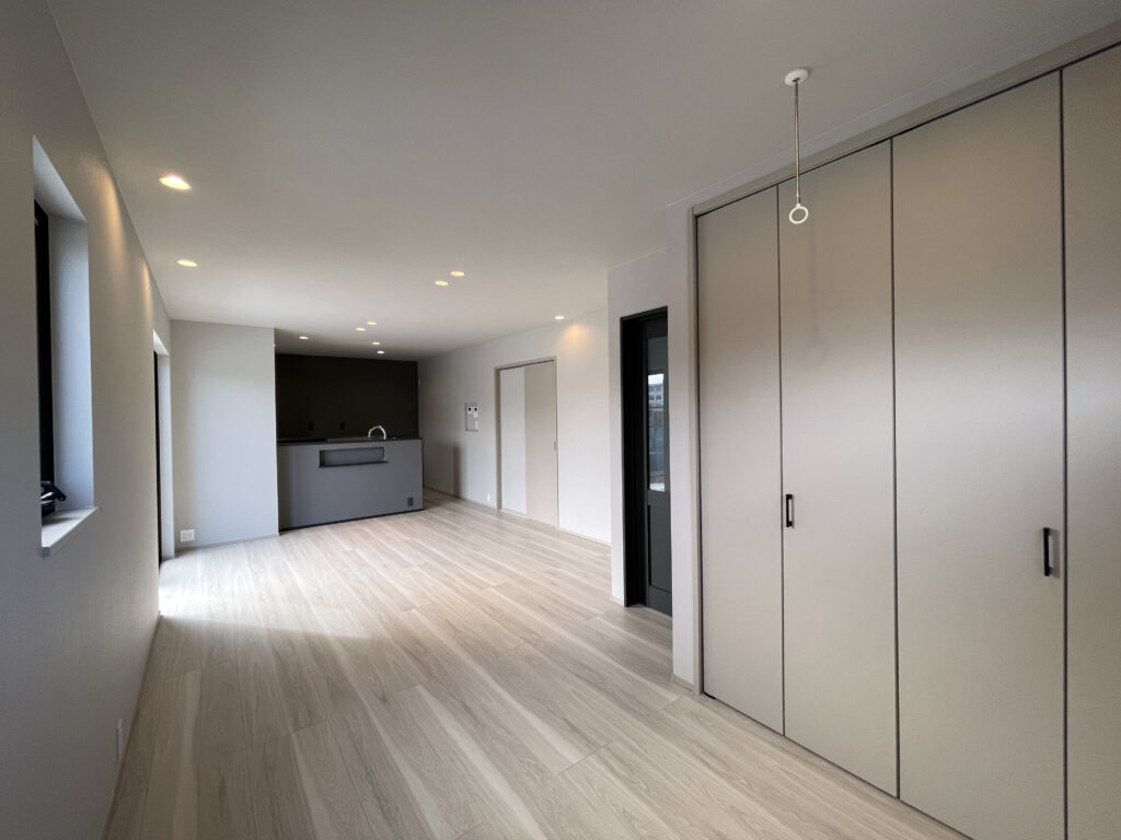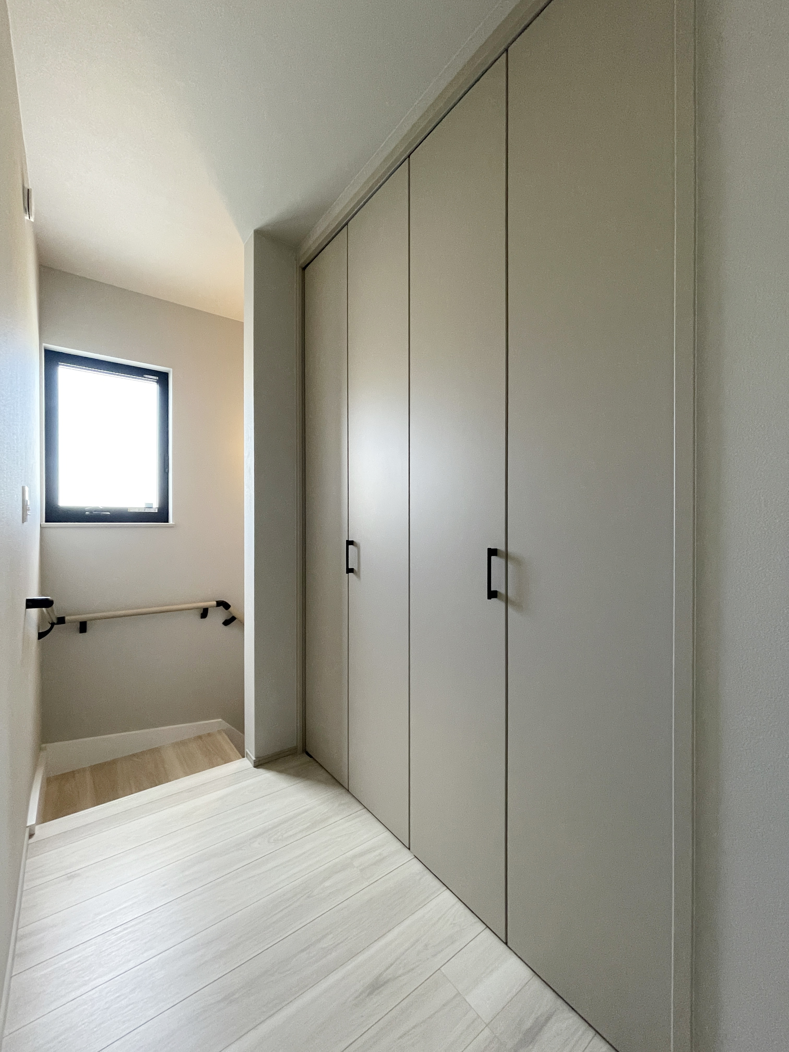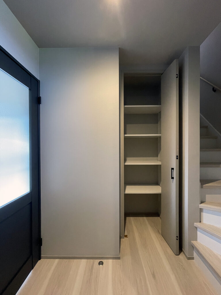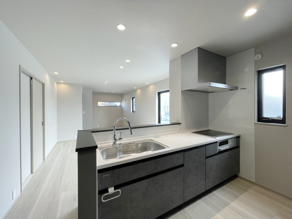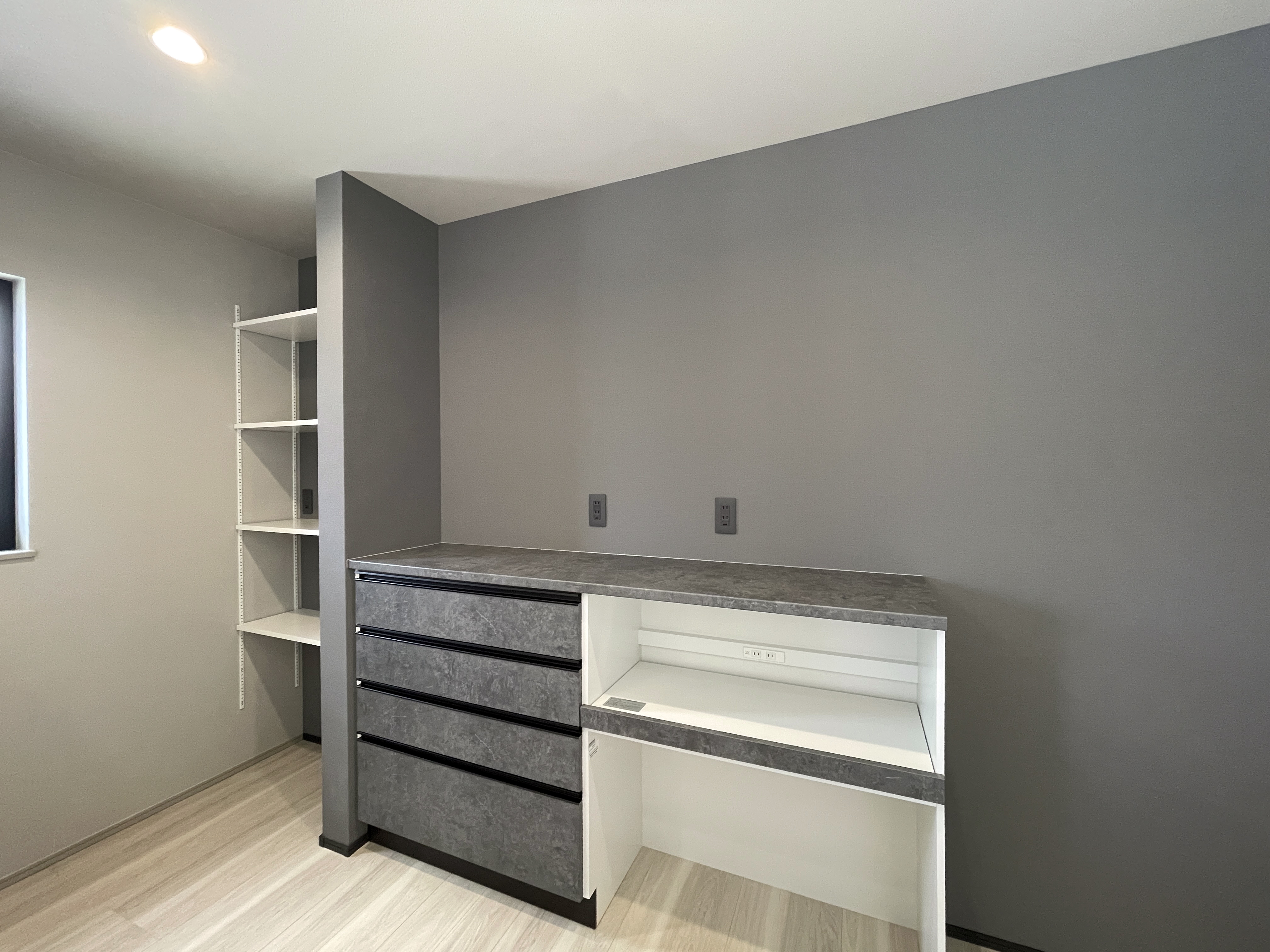 空間を無駄なく使い、お子さまの成長に合わせて使い方を変えられる可変性のある間取りが魅力の住まい。 グレーで統一した外観と内装が落ち着いた雰囲気に仕上げます。 照明やスイッチ、ニッチの位置まで細部にこだわり、毎日の暮らしが心地よくなる家に仕上がりました。