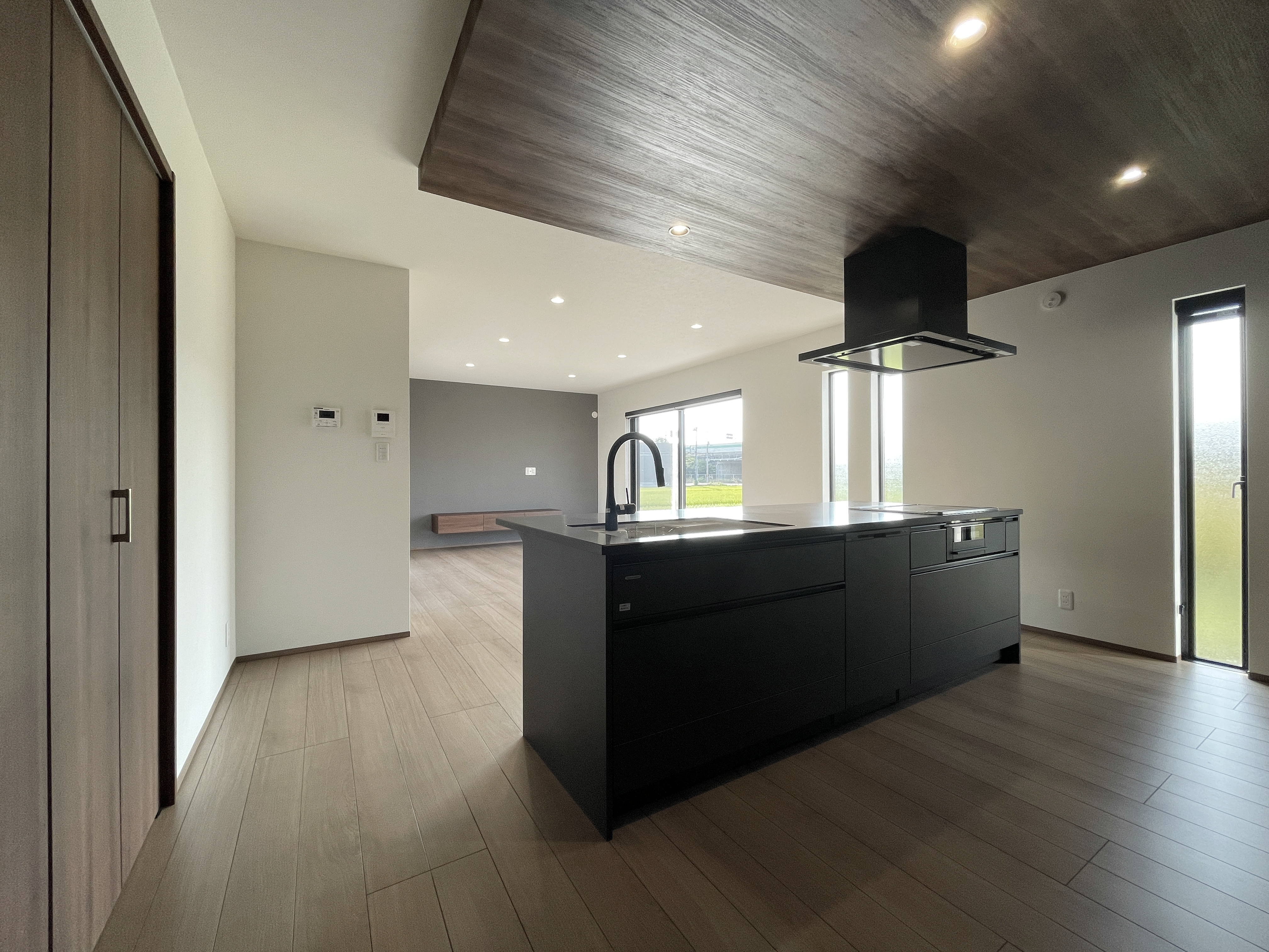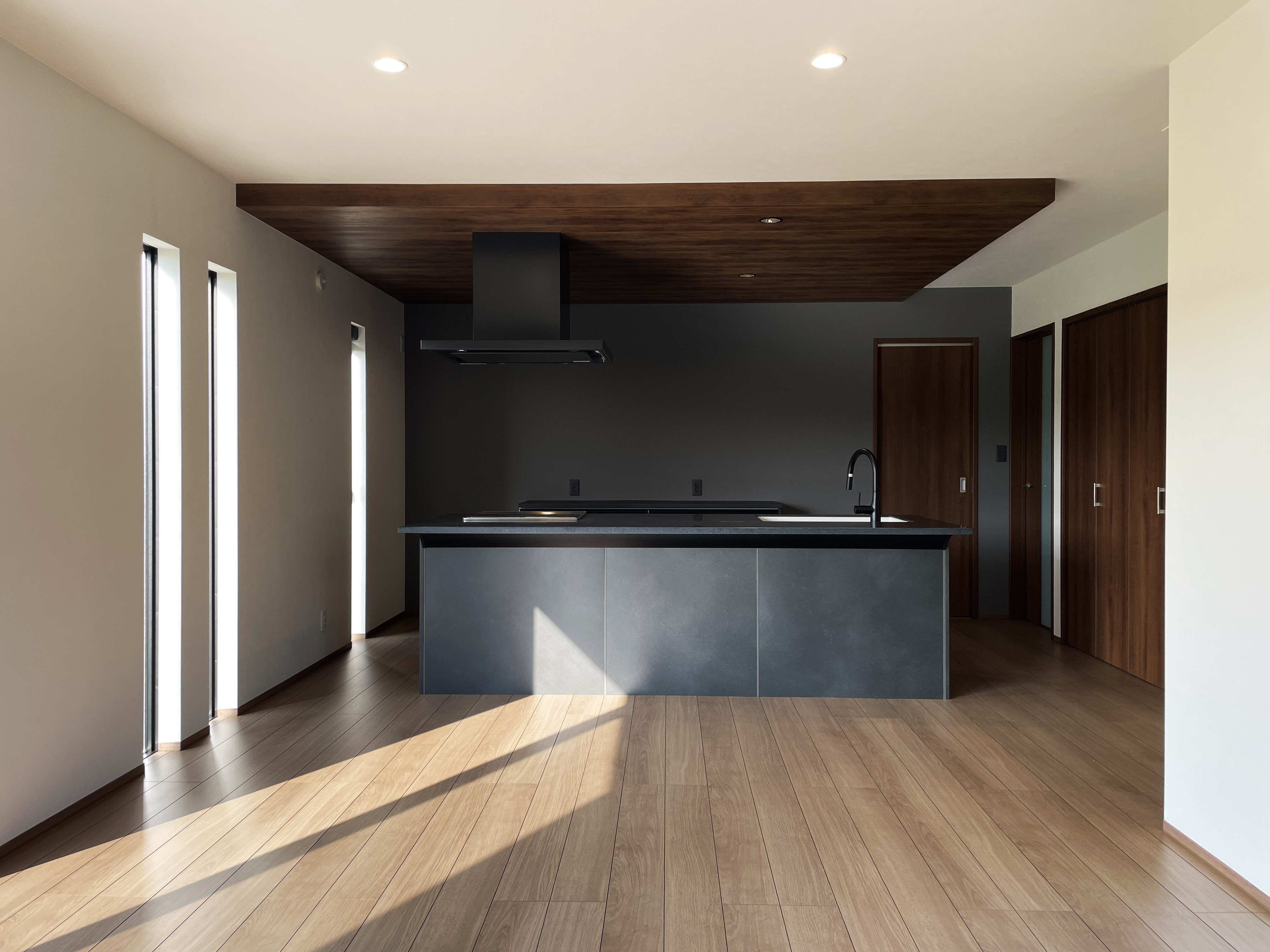 おしゃれなアイランドキッチンが主役の、ちょうどいい半平屋の家。 平屋の安心感に、少しだけ2階をプラスして“ゆとり”も確保。 家事もしやすくて将来も安心、家族にちょうどフィットする暮らしです。