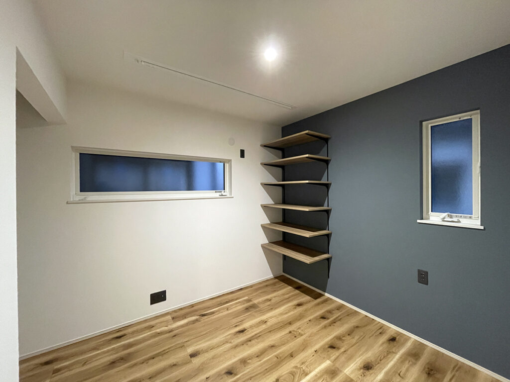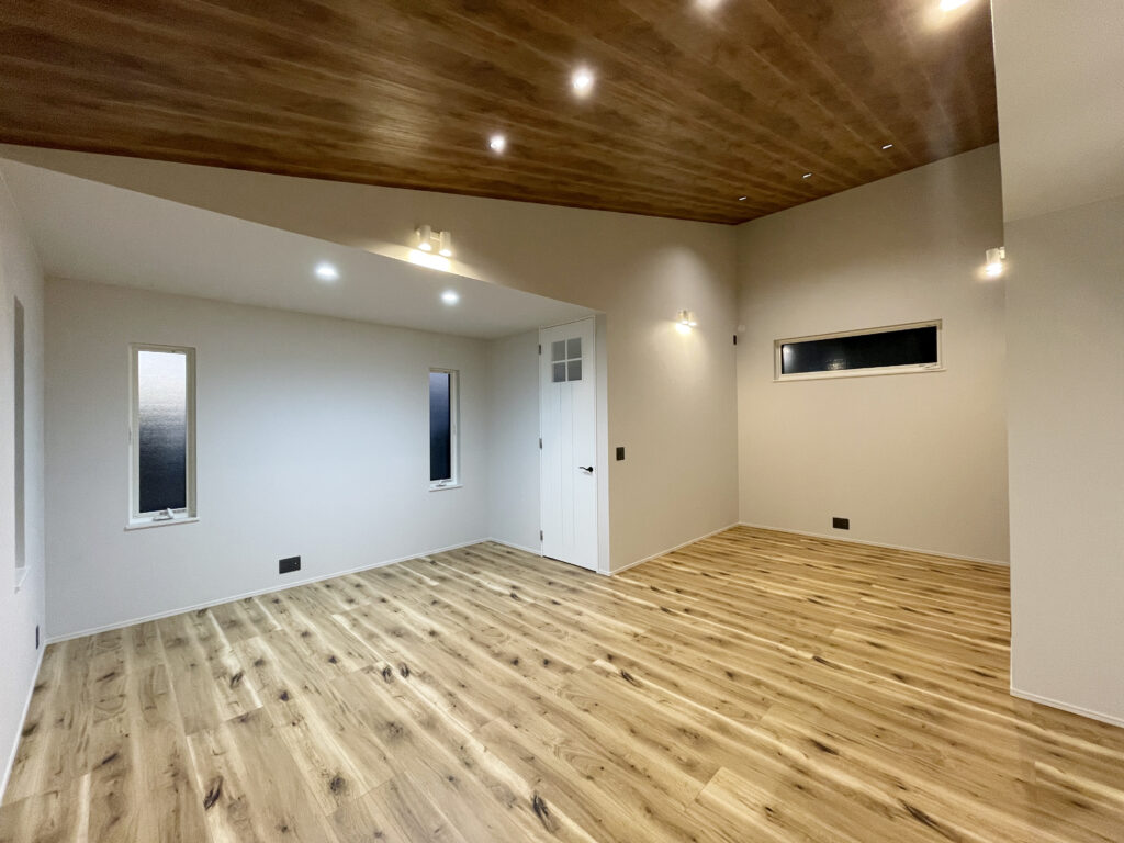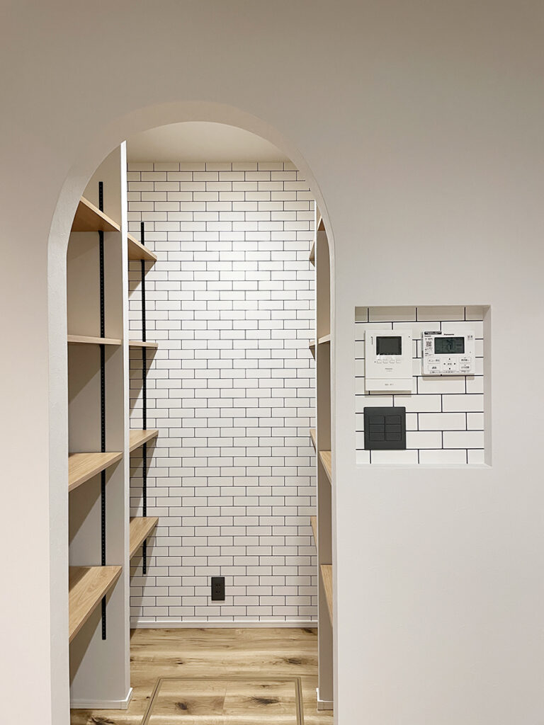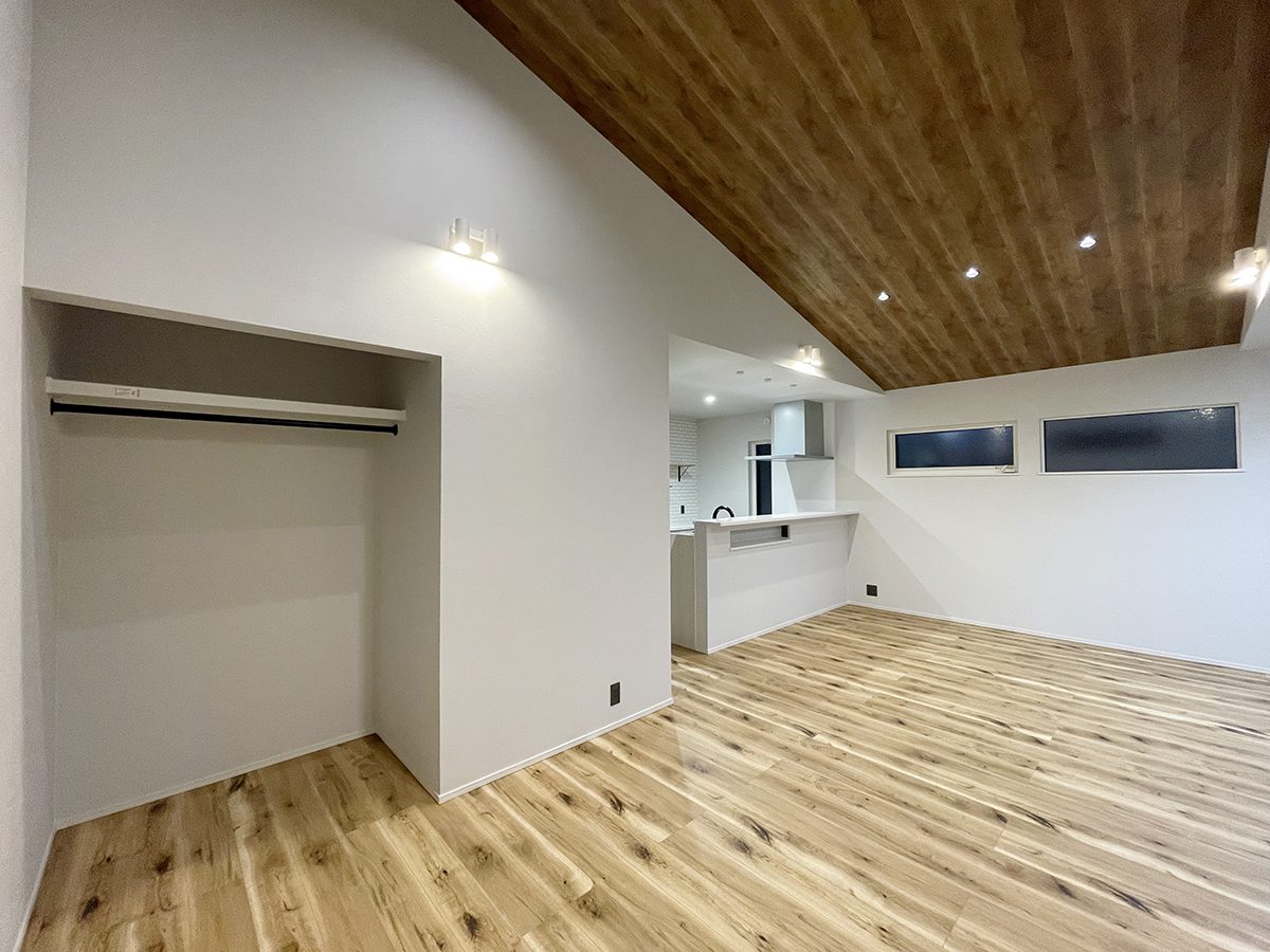 規格住宅をベースに、 ニッチや勾配天井で空間にアクセントを。 気分が上がる、造作洗面台やドア、壁紙。 こだわる場所を決める家づくり。