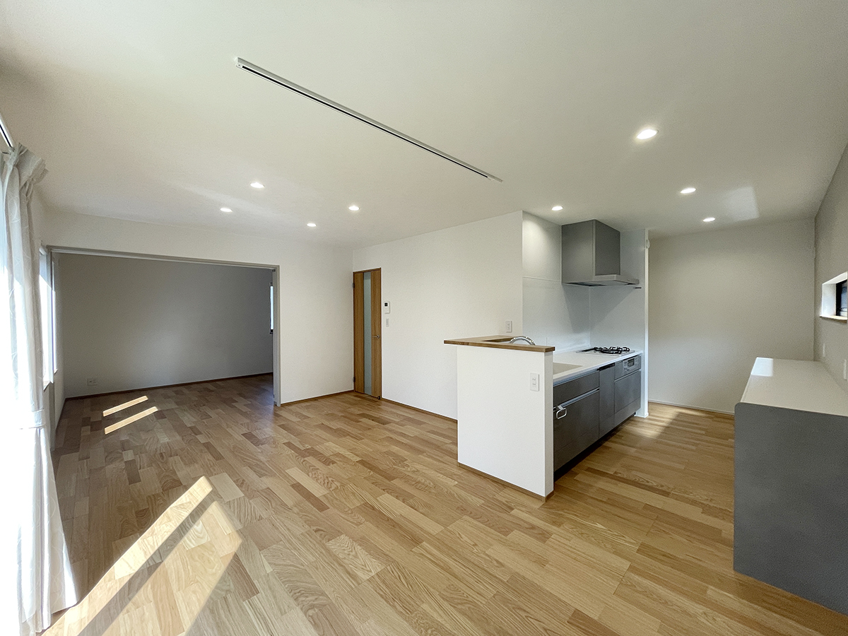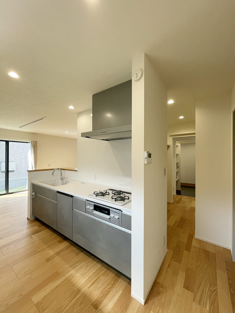 ぐるっと回れる、ストレスのない動線。 キッチンを中心に 料理も洗濯もスムーズにこなせる間取りに。 家族の気配を感じながら過ごせる 心地いい住まいです。